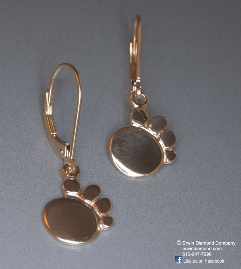 14kt Yellow Gold Euro-Style Earrings Designed and Created especially for Paws with a Cause.